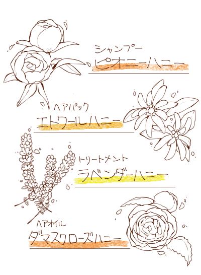 アイテムごとに香調を変えているため、髪のケアを重ねるごとに交わっていくはちみつの香りの変化も楽しめます。