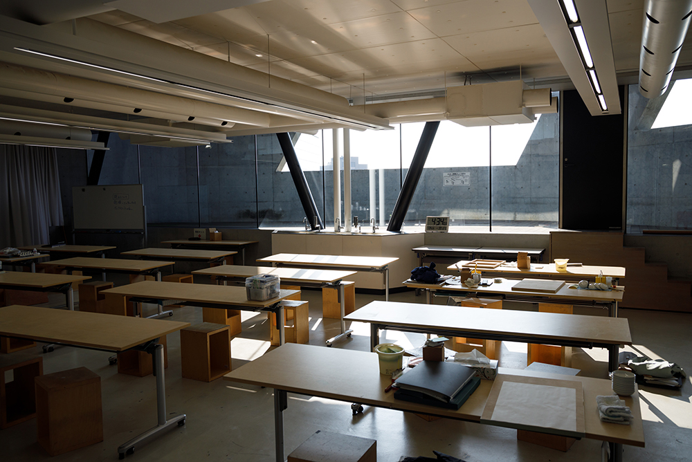長岡造形大学では、技術的な基礎から教員が丁寧に指導します。パネルの水張り、烏口の使い方から、カメラなどの機材、フォトショップやイラストレーターといったアプリケーションの使い方まで、誰でも使えるようになります。